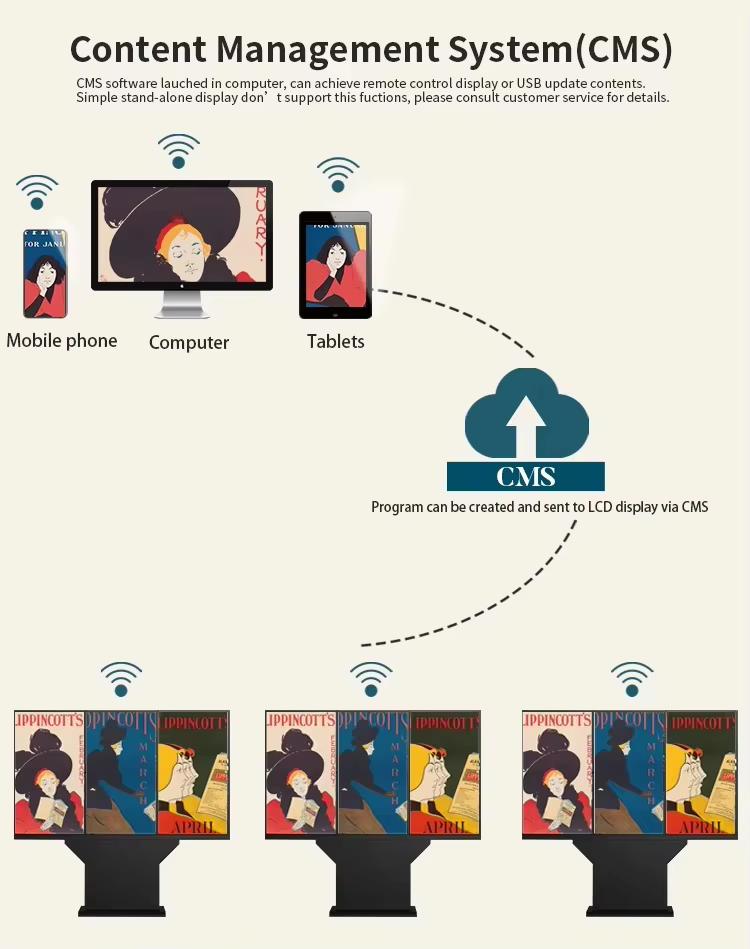 Ingeniører kan opnå 100% overvågning og styring på kontoret med Marvel OMC-software.support langdistance onlineudgivelse, overvåge aktuelle udsendelsesprogrammer, administrere flere enheder osv. Via Marvel CMS-software. Hvor skal du bruge Marvel Outdoor LCD Digital Signage? Bushylster / togstation