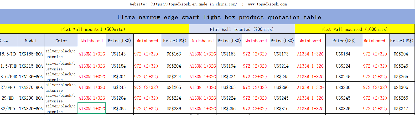 Leder du efter en pålidelig 4K smal bezel indendørs vægmonteret digital skiltning 1000nits for at imødekomme dine forretningsbehov? Se ikke længere end Shenzhen Topadkiosk Display Technology Co., Ltd. Som en førende producent og leverandør med base i Kina, er vi specialiserede i at levere digitale skiltningsprodukter og løsninger af høj kvalitet, der er skræddersyet til forskellige applikationer.