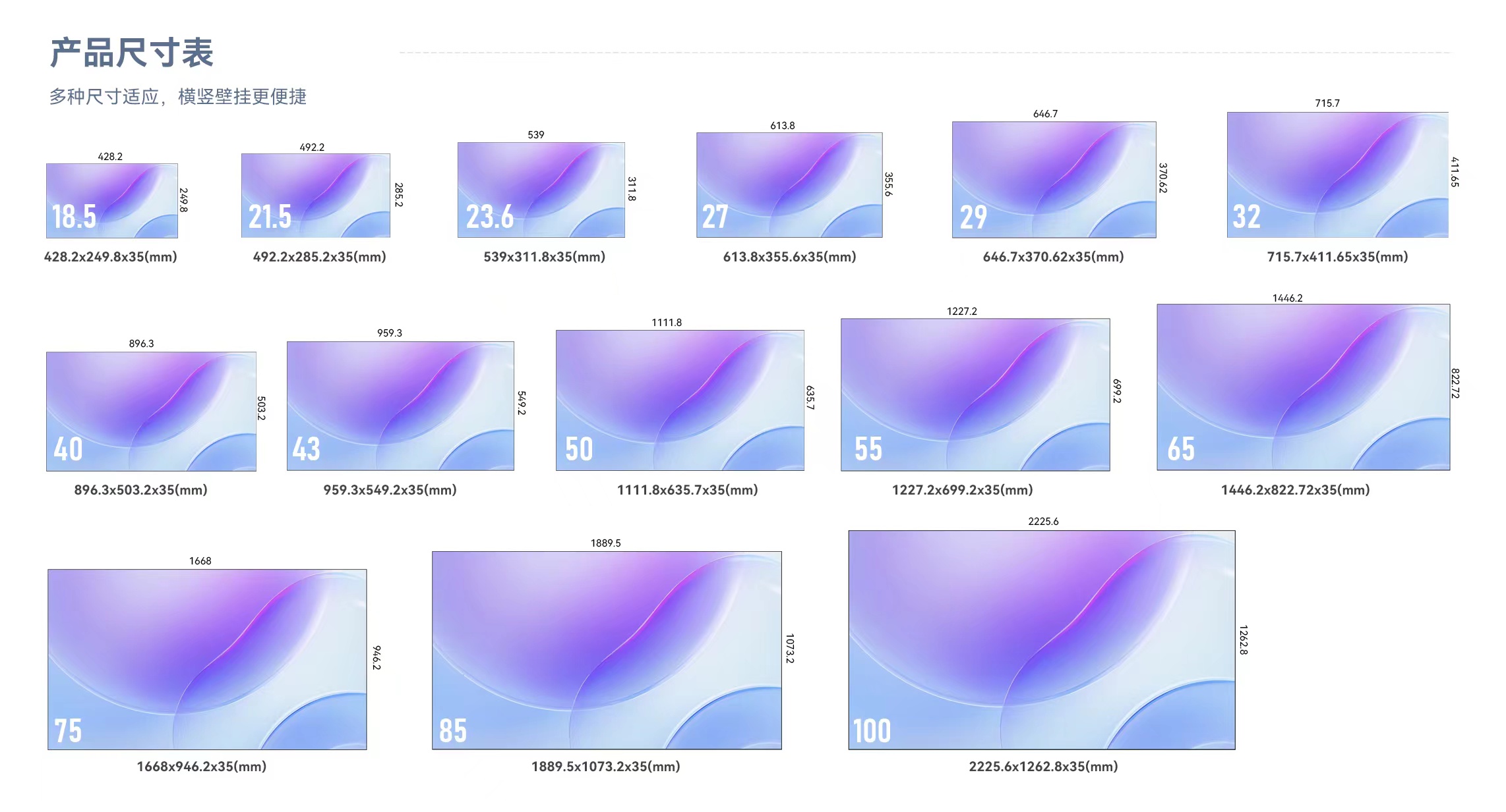 | LCD -skærmstørrelse | 21.5/32 "/43"/50 "/55"/65 "valgfrit |